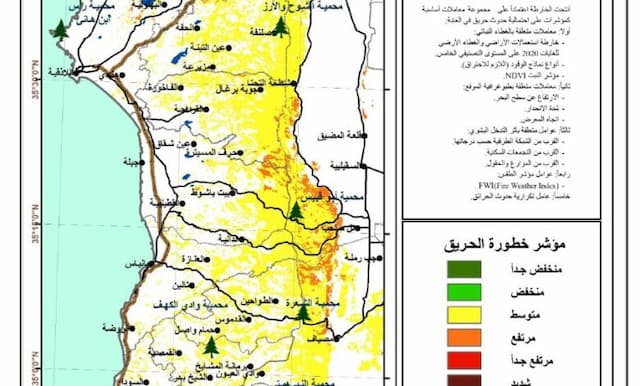 منصة الغابات والحرائق: مؤشرات خطورة متوسطة إلى مرتفعة في أجزاء من الجبال الساحلية