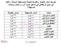 متوسط أسعار الخضار والفواكه حسب "وزارة التجارة وحماية المستهلك