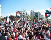 حشود تحيي يوم الأرض في ساحة السبع بحرات بدمشق.